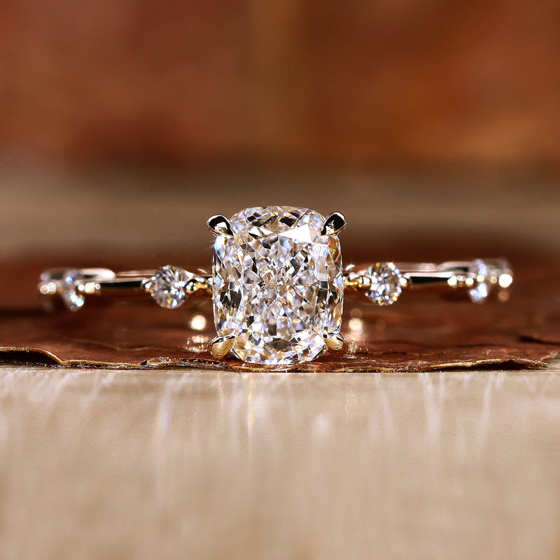 Elongated Cushion Cut Lab-Grown Diamond Distance Pavé Ring 1CT - Silver - Size O.5