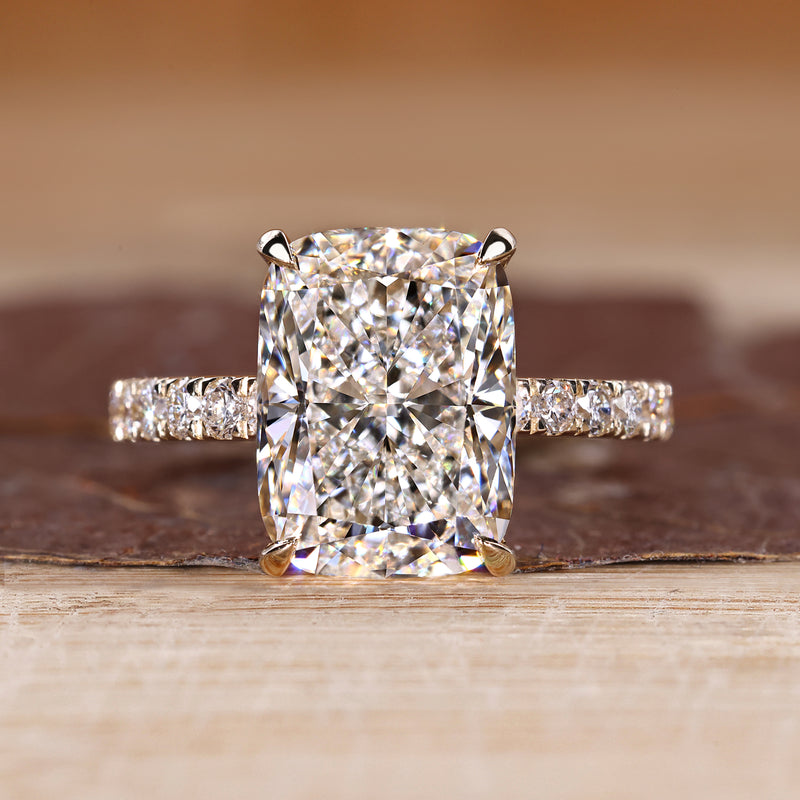 Elongated Cushion Cut Lab-Grown Diamond Pavé Ring 5 - 8 CT