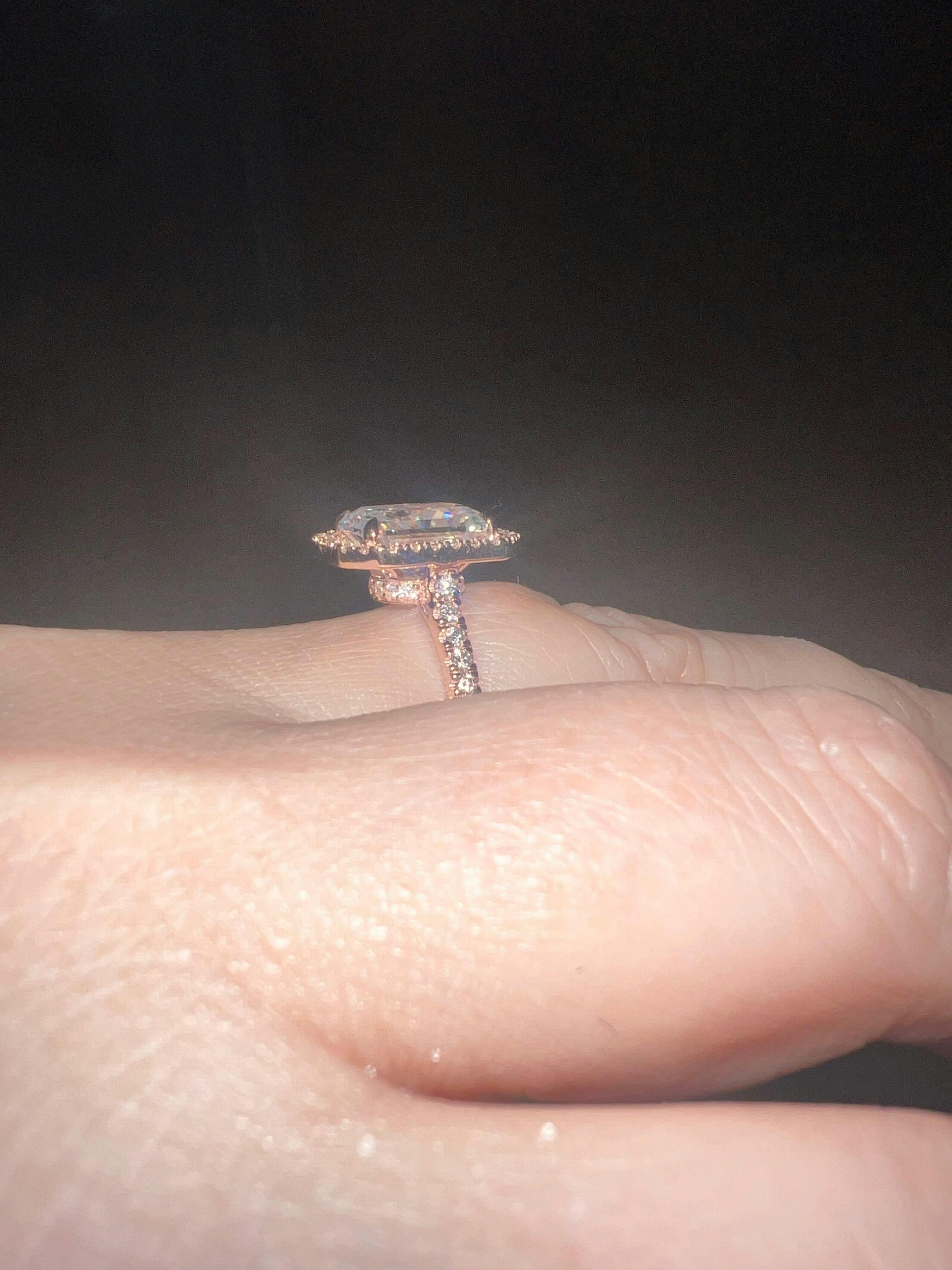 3.53 CT Radiant Pave Halo and Shank Moissanite Engagement Ring