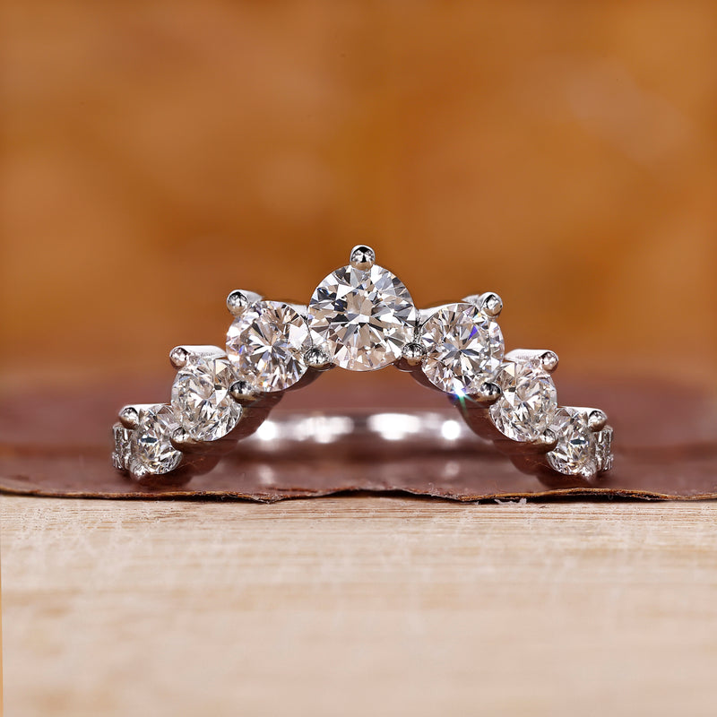 Chevron Tiara Style Lab-Grown Diamond Curved Band