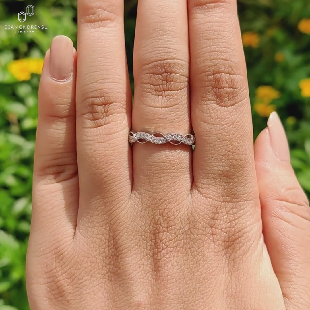 1.20 MM Round Lab Grown Diamonds Band, Wave Design Vintage Wedding Band