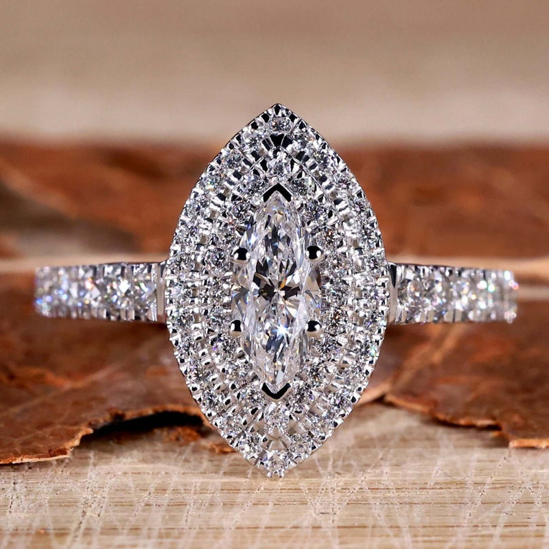 Marquise Cut Lab-Grown Diamond Double Halo Pavé Ring 1.2 TCW