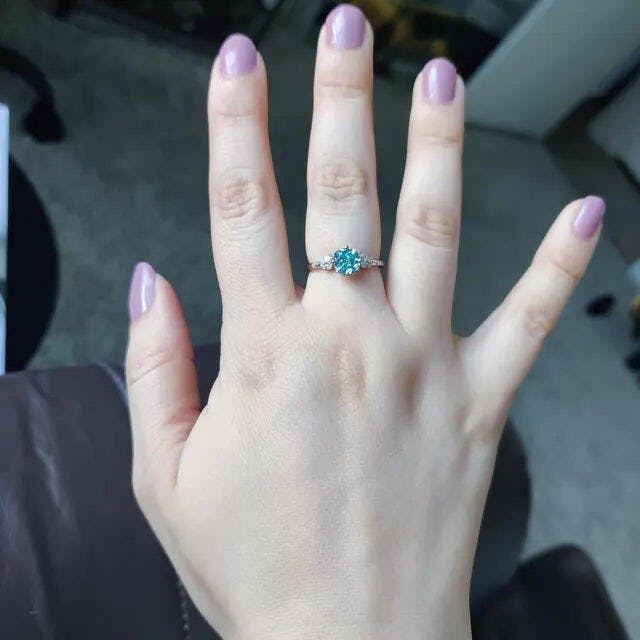 Cushion Cut Cyan Blue Moissanite Hidden Halo Compass Prong Ring 1.2 CT