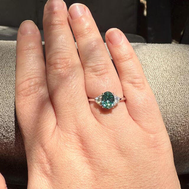 Oval Cyan Moissanite with Side Stones Ring 2.3 TCW