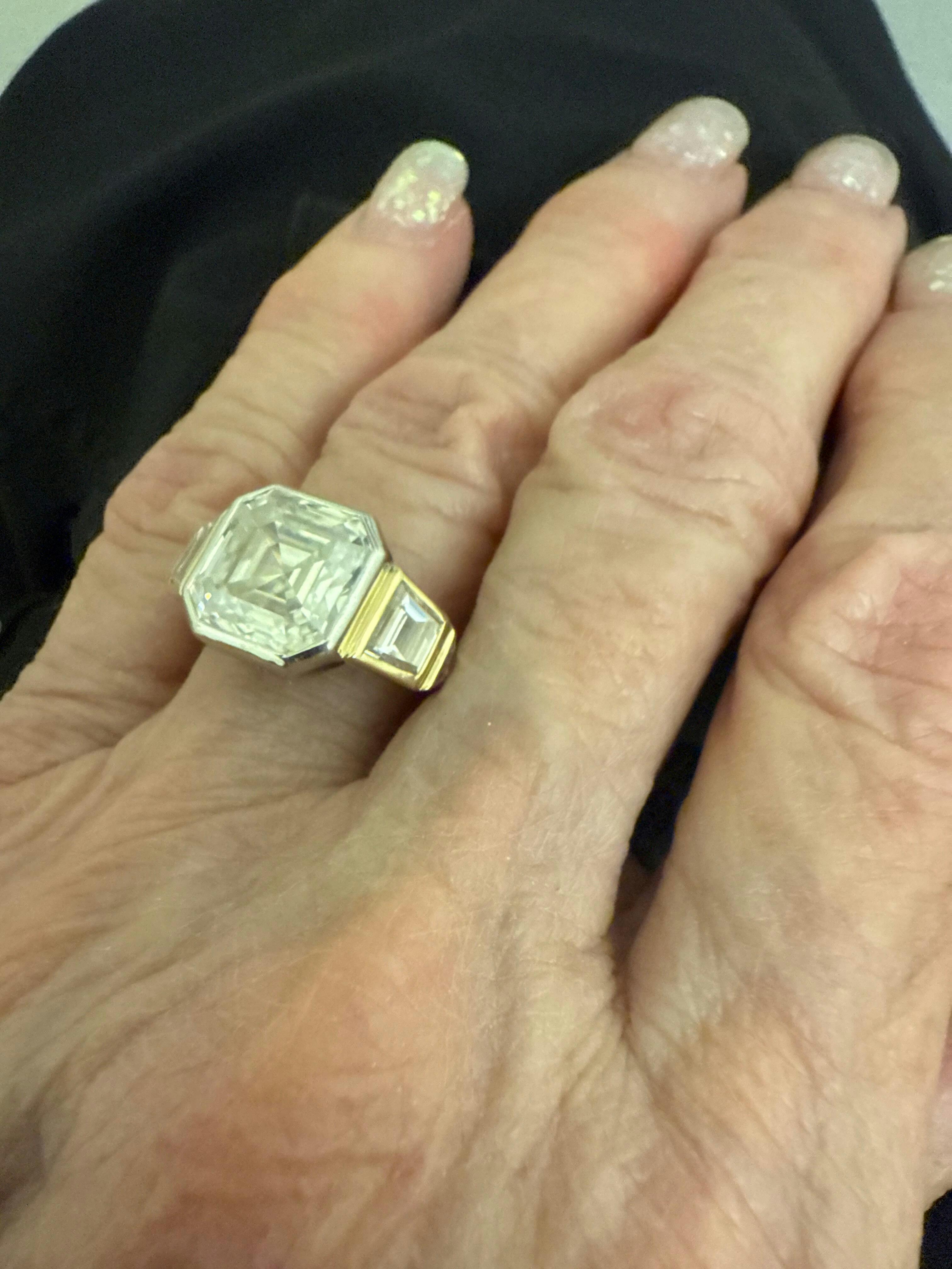 Asscher Cut Moissanite Bezel Set 3 Stone Ring - 8 CT