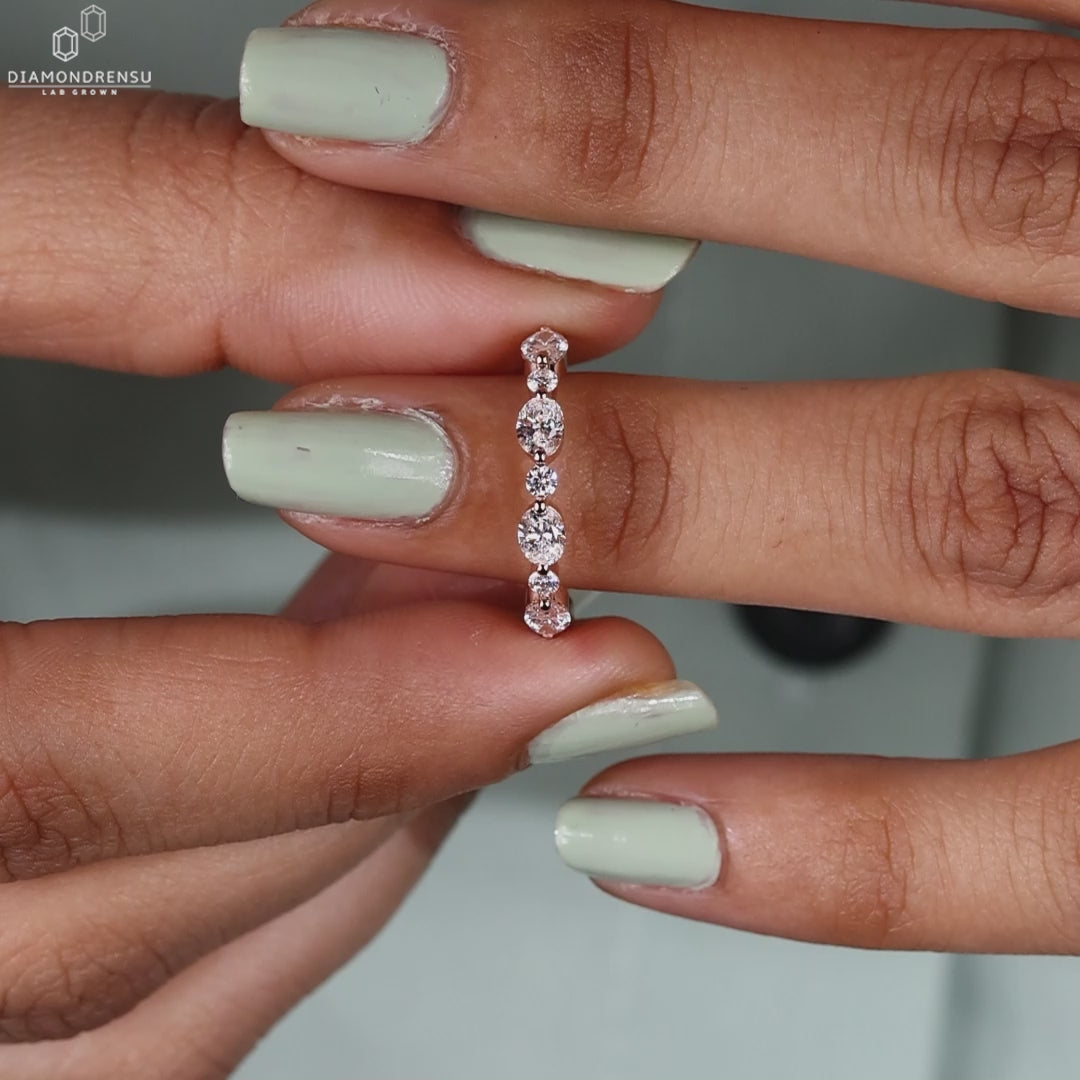 Oval and Round Lab Grown Diamond Wedding Band for Women