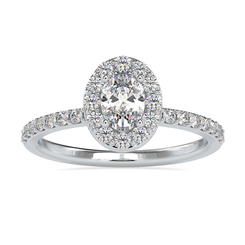 0.78 TCW Oval Cut Colourless Moissanite Classic Halo Ring