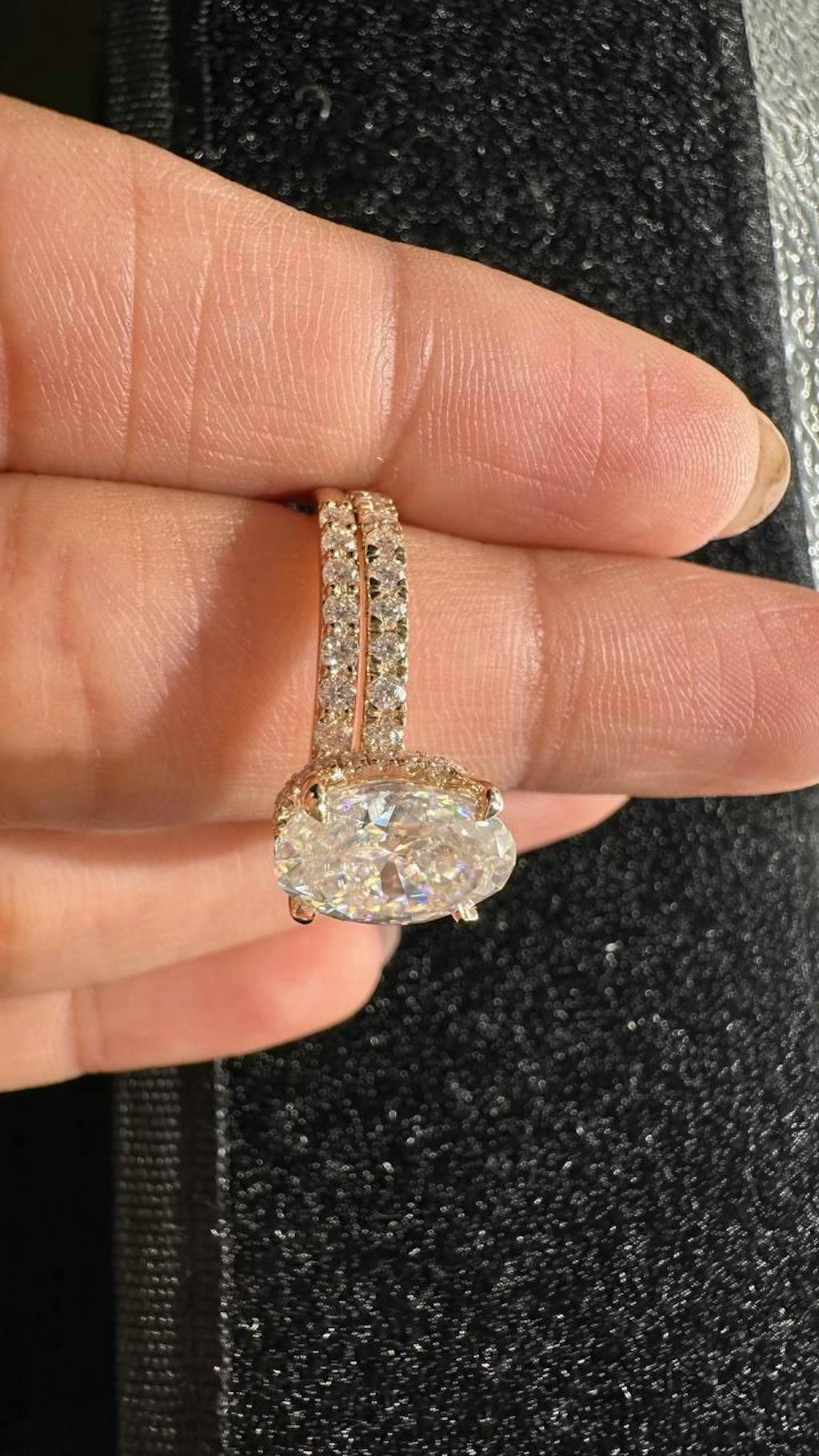 2.57 TCW Oval cut Hidden Halo Pave Set Moissanite Engagement Ring