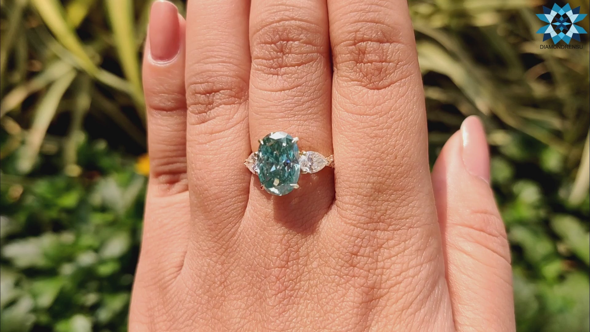 5.21 TW Oval Cut Twisted Shank Three Stones Moissanite Engagement Ring