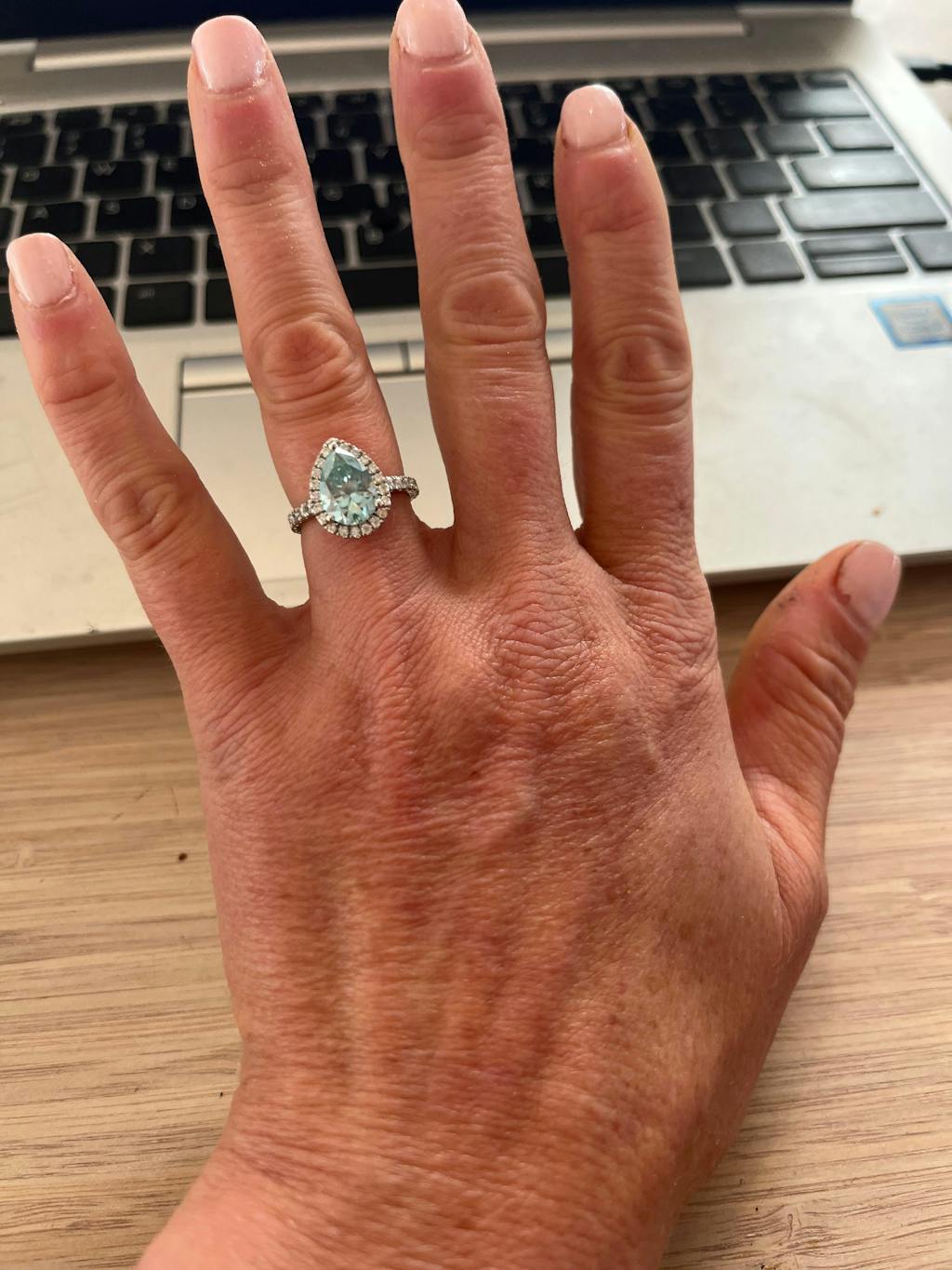 2.30 TCW Cyan Blue Pear Cut Halo Pave Moissanite Wedding Ring