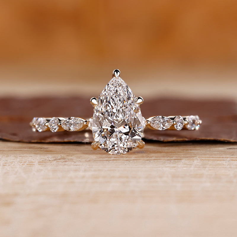 Pear Cut Lab-Grown Diamond Hidden Halo Round and Marquise Bubble Band Ring 1 – 2 CT