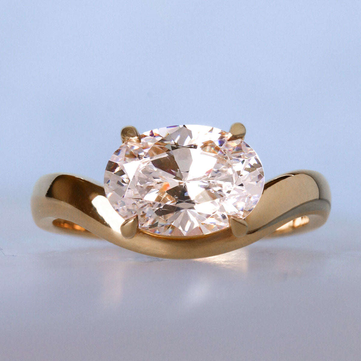 Oval Cut Lab-Grown Diamond East-West Curved Ring 2 CT