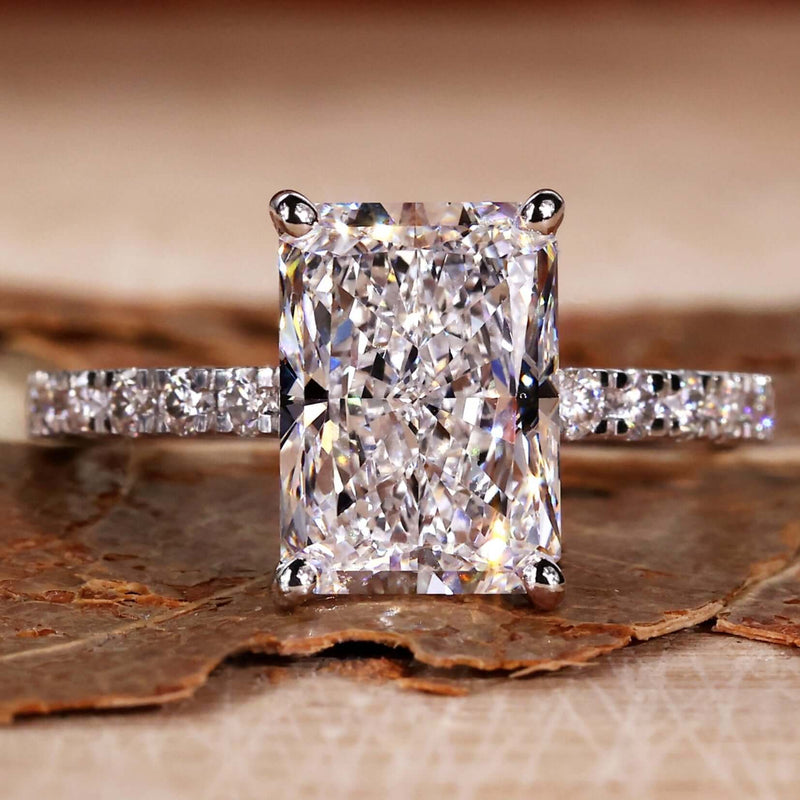 3.01 CT Radiant Cut Lab Grown Diamond Engagement Ring, Pave Set Ring