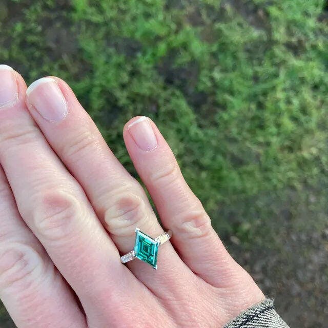- Shape : Lozenge Cut Moissanite