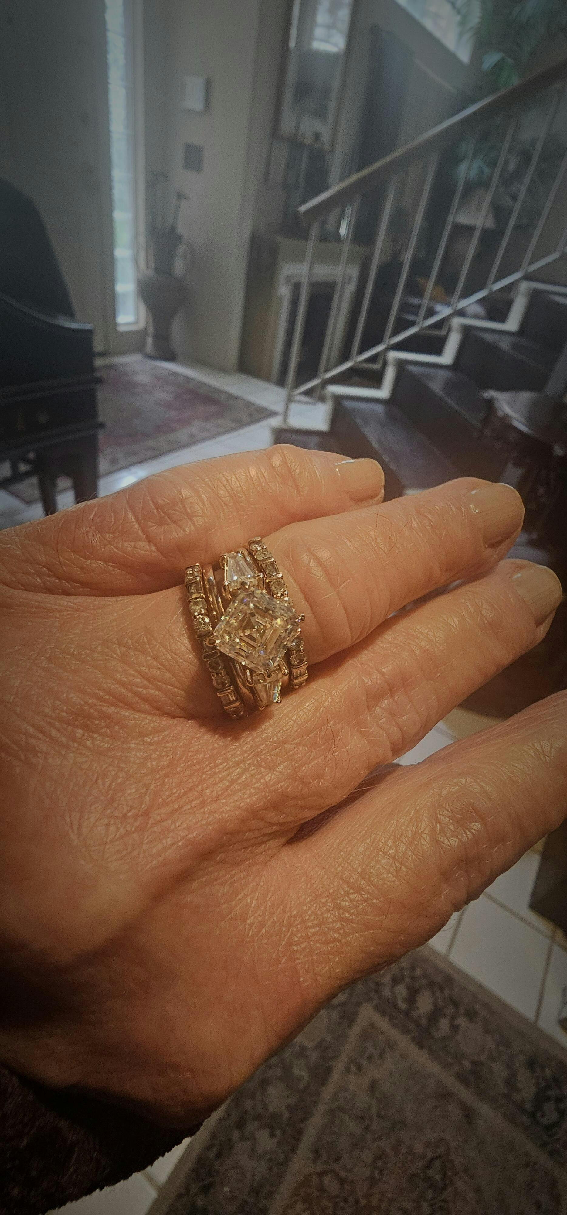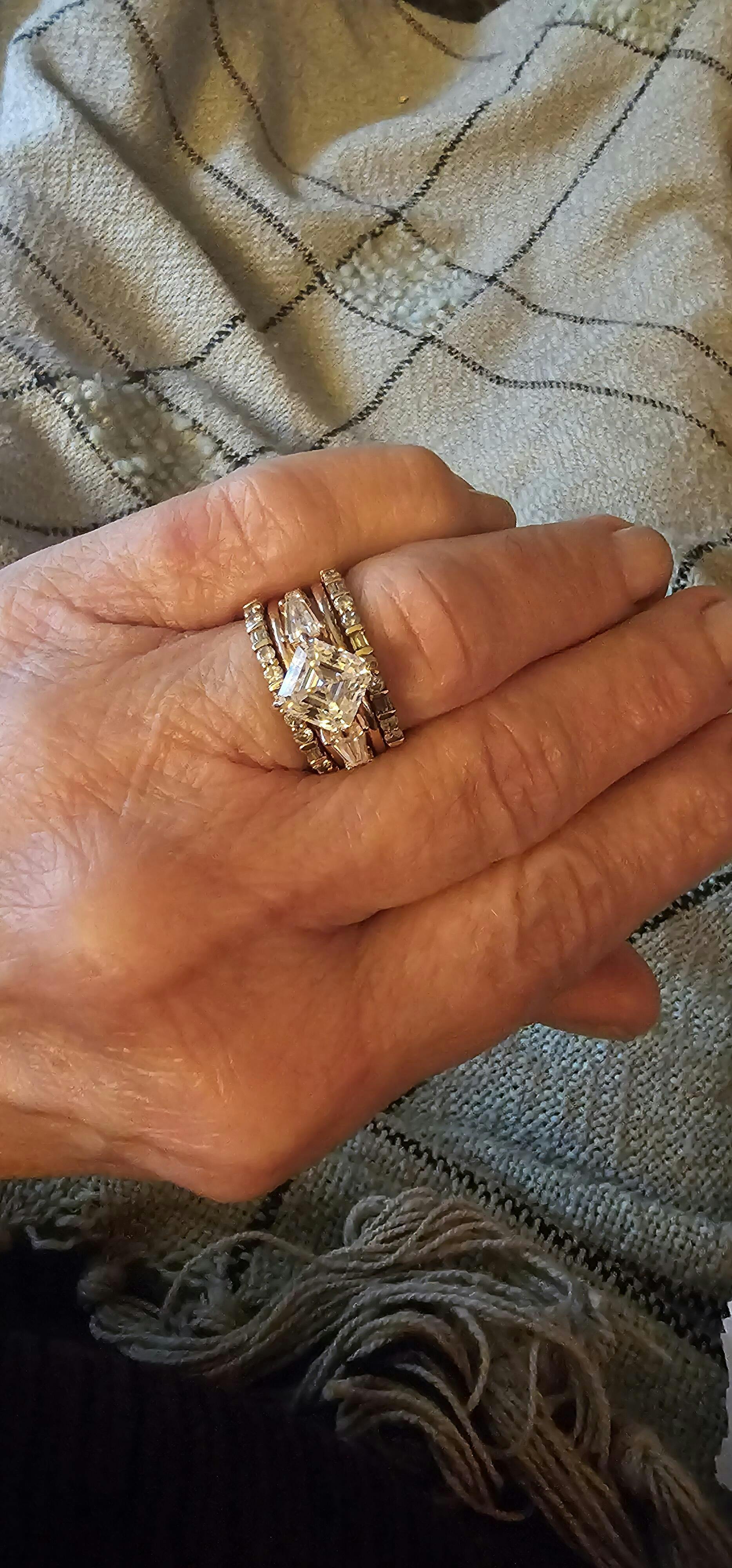 Octavia Cut Colorless Moissanite Three Stone Ring 3.7 TCW