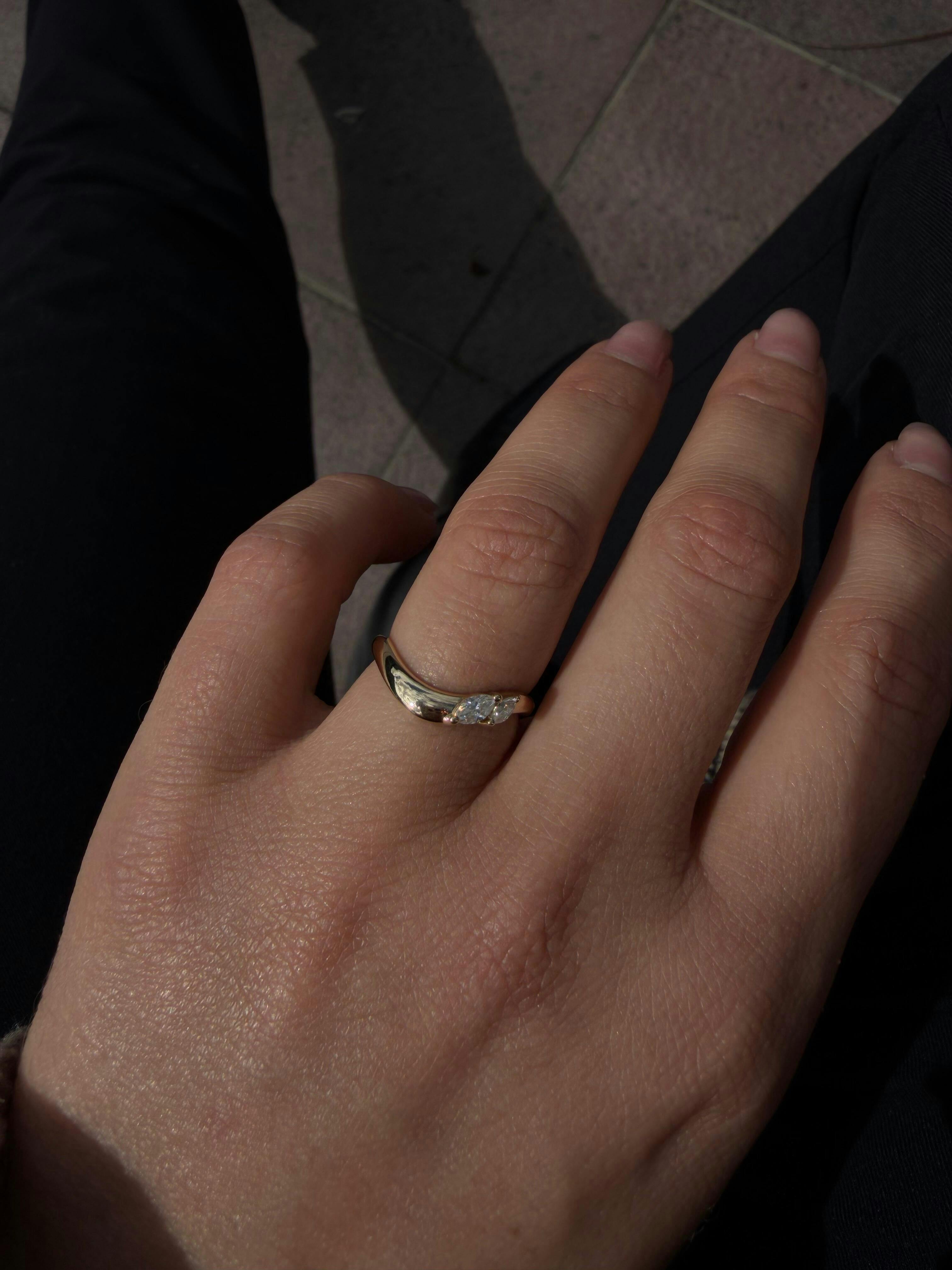 Gorgeous ring! Size was perfect. So happy they offer quarter sizes! I ordered it 3 weeks before my city hall wedding. I didn’t realize that it was made-to-order. I thought, if it didn’t arrive in time, I could use a back up ring I have at home. Ankit emailed me with photos of my new ring 12 days after ordering. It was ready and he confirmed shipping information. He offered faster shipping for $45 extra and I decided to do it. I’m so glad I did. It arrived the day before my wedding! Perfect timing. And I have Ankit to thank for sending it right away and sending the certificate separately. The certificate arrived a few days after the wedding. Overall I’m thrilled with this company and this ring! It was smaller than I expected, I must have larger hands than the models. And one side of the ring where the curve of the pear diamonds meet has four V-shape designs that cast a small shadow, making it darker than the rest of the ring. I think they call it “antiquing” in jewelry terms, although it’s not actually antiqued. It gives that illusion. It wasn’t noticeable in the photos probably because the lighting is so good in the professional photography. It bothers me only a teeny bit. It’s one of the reasons I didn’t choose other rings. But I am very satisfied and so grateful it arrived in time! I love it.