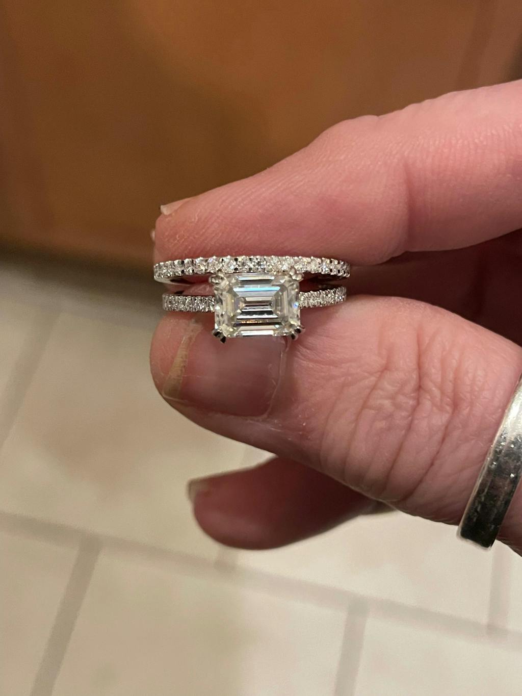 Attached photo- bottom is my 15 year old Tiffany ring outshined by my new ring!