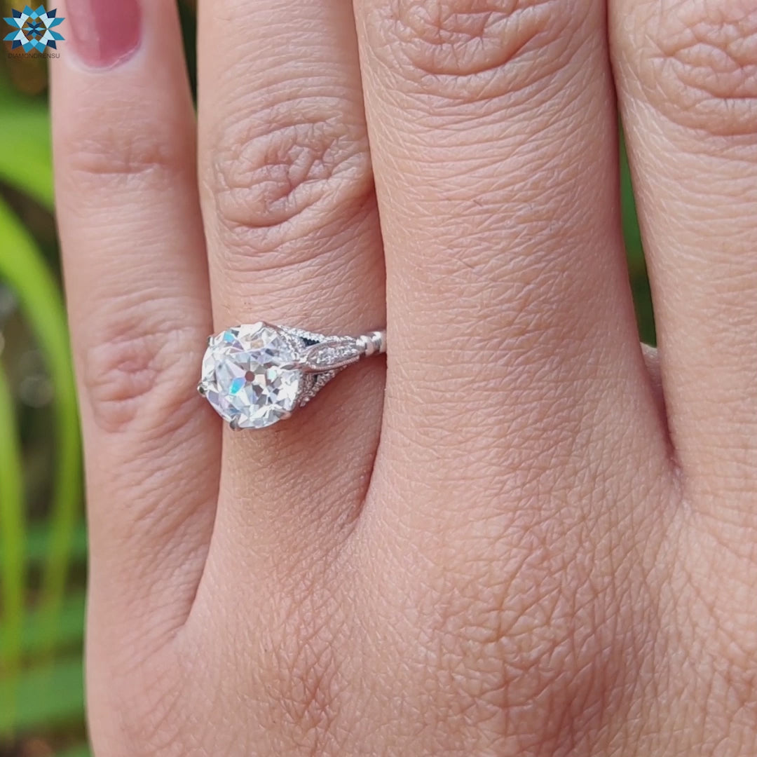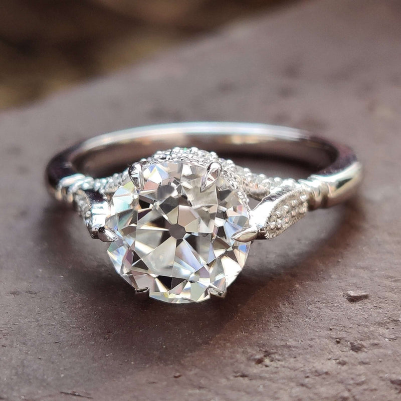 Round Old European Cut Moissanite Vintage Ring 2.1 TCW