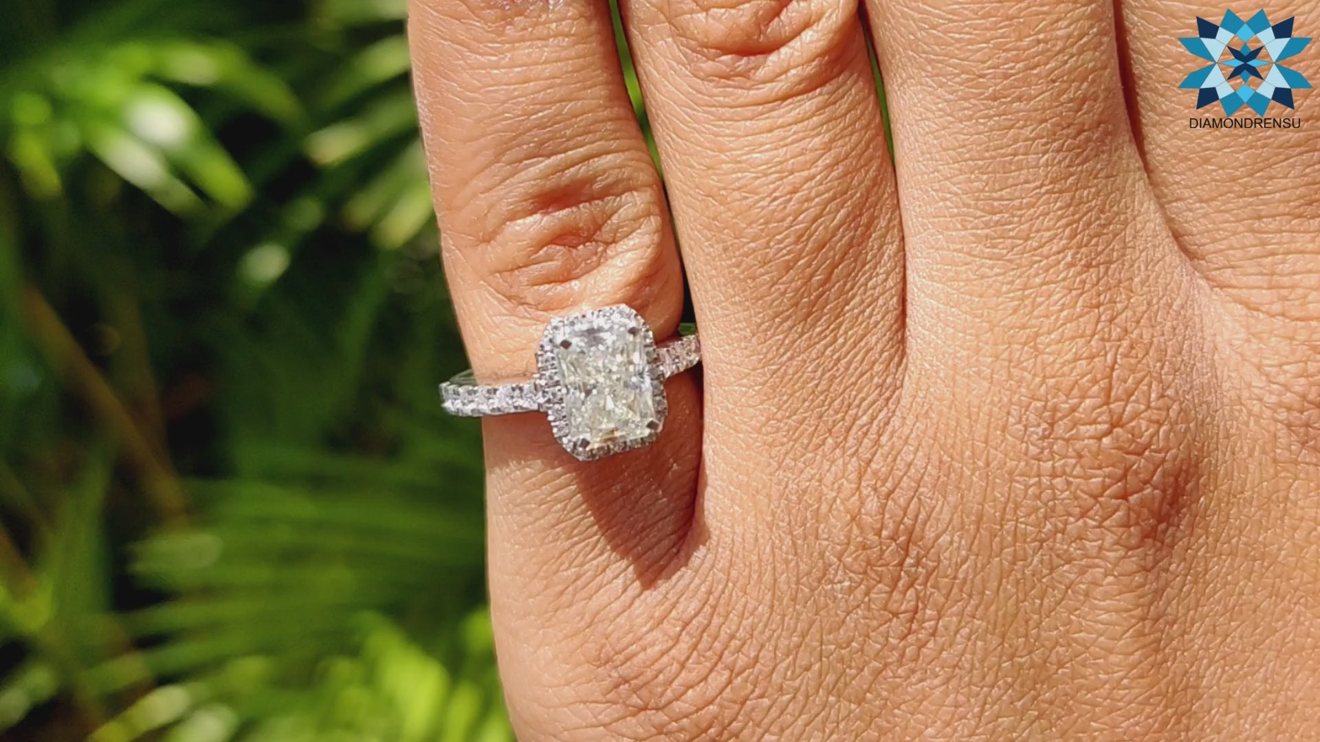 2.83 TCW Radiant Cut Hidden Halo Pave Moissanite Engagement Ring