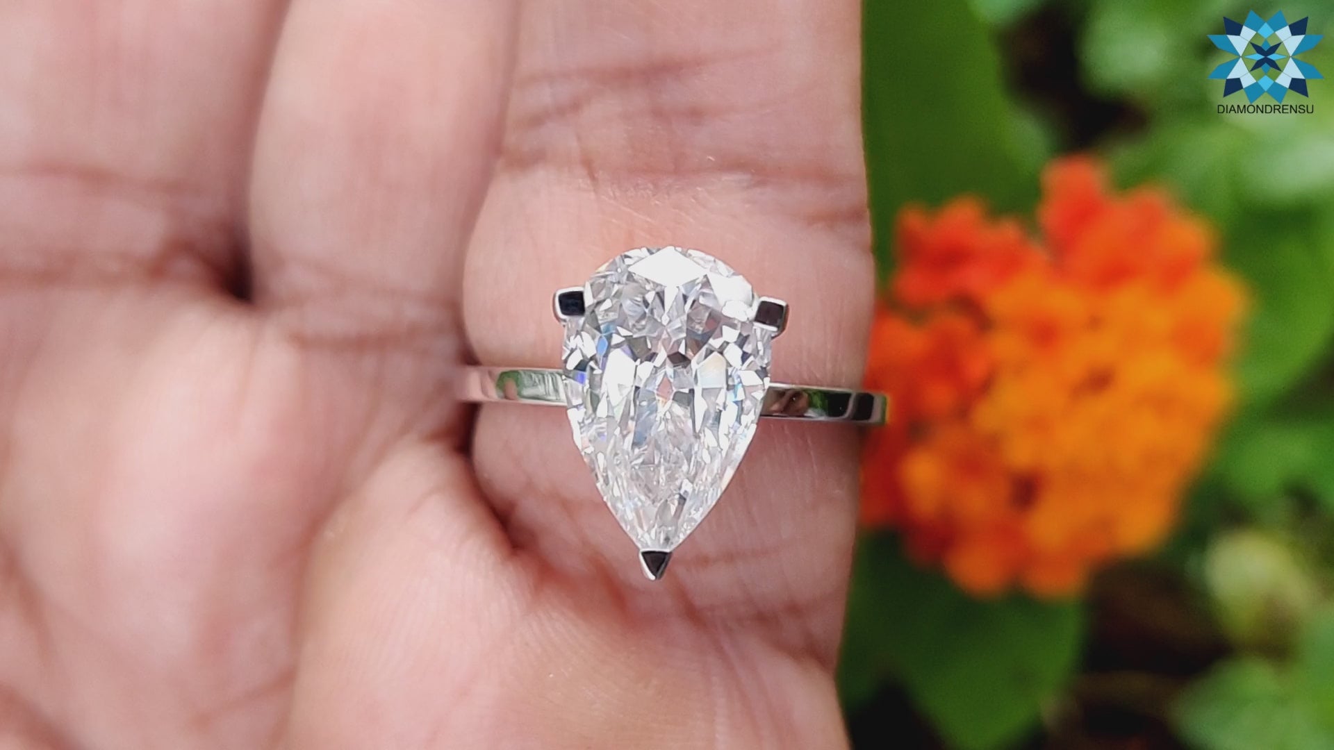3.11 CT Elegant Pear Rensu Cut Classic Solitaire Moissanite Wedding Ring