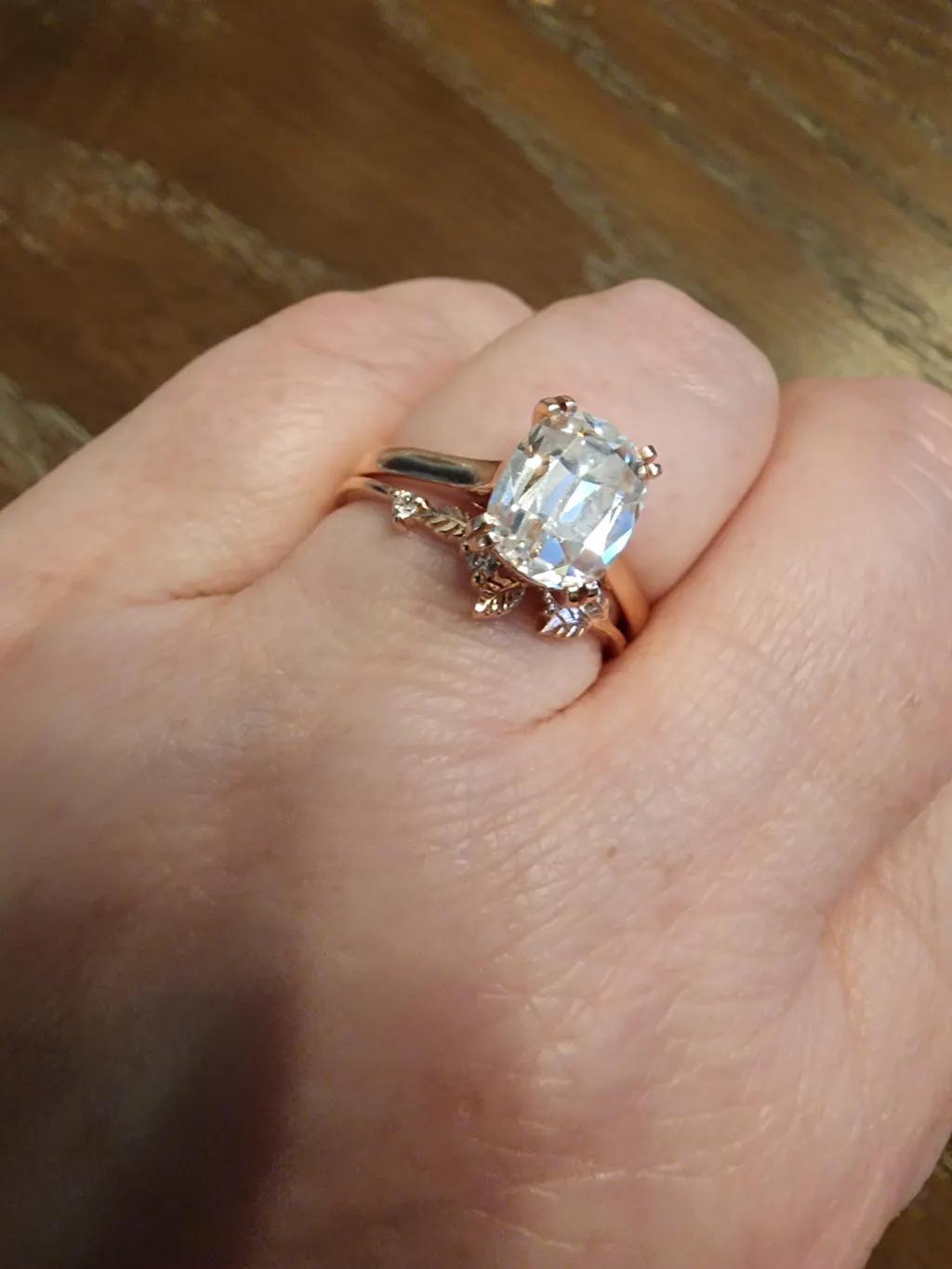 Round Lab-Grown Diamond Leaf Chevron Nature Inspired Ring