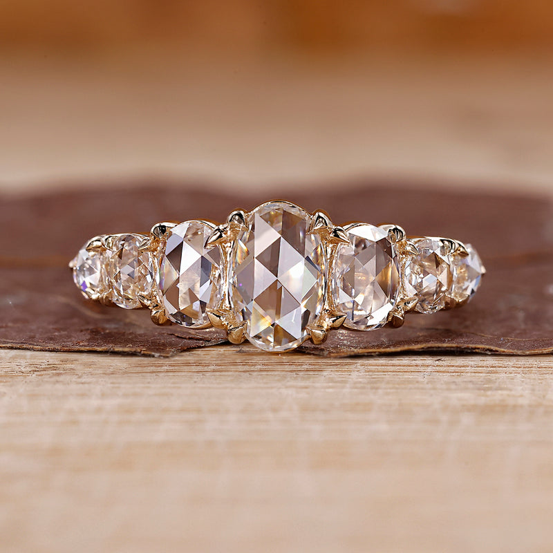Oval Rose Cut Lab-Grown Diamond Seven Stone Ring