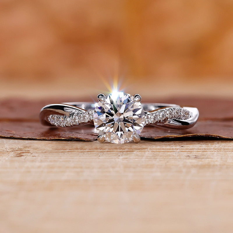 Round Cut Lab-Grown Diamond Twisted Pavé Engagement Ring – 0.5 - 2 CT